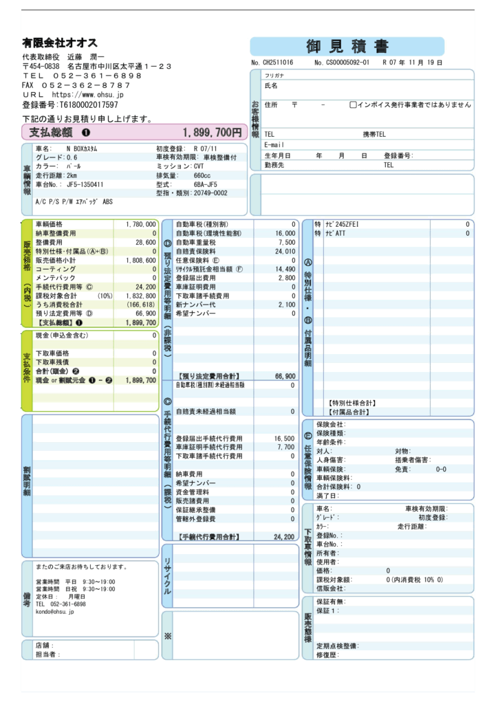 R7 NBOXカスタムお見積り